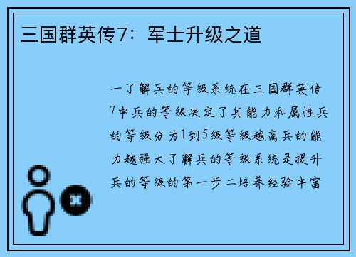 三国杀名将传如何增加战力等级 一、深入了解名将技能 在三国杀中,每个名将都有独特的技能,了解名将技能是提升战力等级的基础。玩家需要仔细研究每个名将的技能描述,了解技能的效果和使用条件。只有深入了解名将技能,才能更好地发挥其优势,增加战力等级。 二、合理选择名将组合 在三国杀中,玩家可以根据自己的游戏...