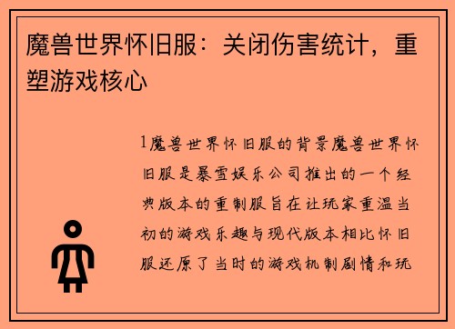 魔兽世界怀旧服:关闭伤害统计,重塑游戏核心